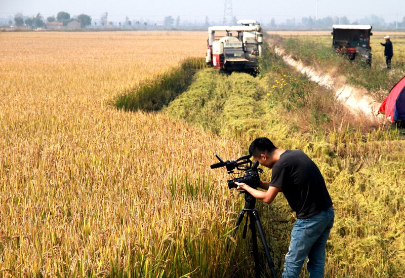 摄制组在市劳模刘英军沙光鱼养殖基地和房入超池塘,拍摄蛙钩和沙光鱼捕捞现场,摄制人员专业认真,每一个画面和构画都精心策划。有特写,有近景、有解说,有专访,并来到大新农场盐田玉牌“富硒海水稻”收割现场实地拍摄。此次央视对我公司的深入报道,体现的青口公司作为市级层面沙光鱼产业化基地和“盐田玉”品牌在全市的认可,将进一步加深对沙光鱼养殖和盐田玉大米品牌宣传推介。