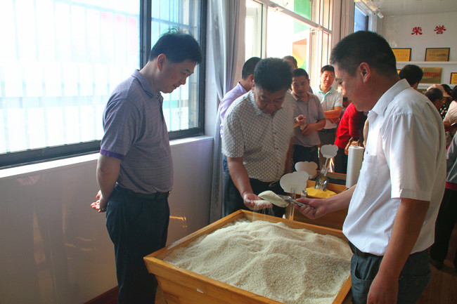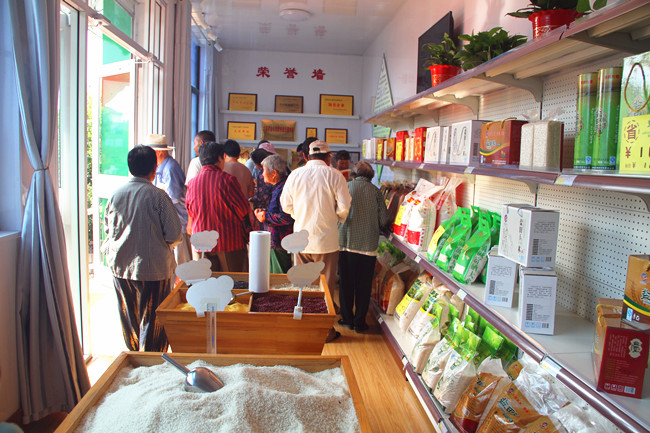 展销中心主要展示销售公司“盐田玉”系列产品,清香米、富硒米、喜米等不同种类规格大米均在展销之列,极大方便了周边居民选购。