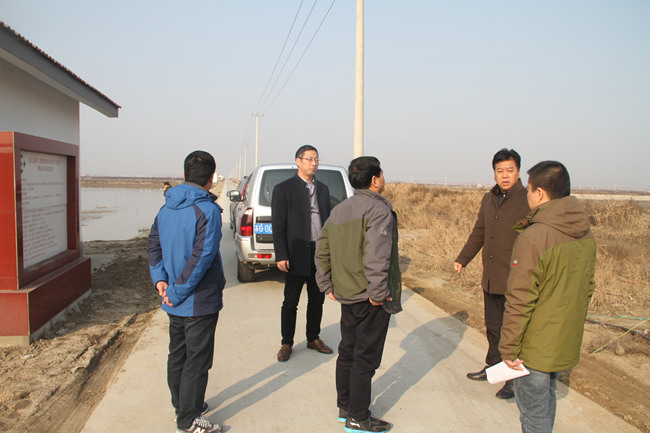 1月17日上午,市农开局副局长成云飞率专家评审组一行,来我公司对申报的市农开优质项目——2015年度青口盐场黄沙高效养殖示范园区进行实地初评。公司副总经理周绪祥陪同考察。