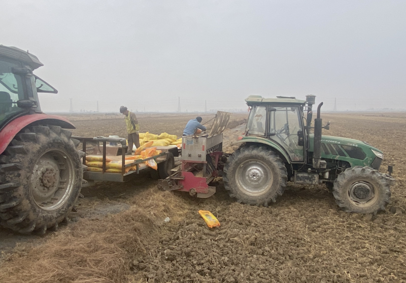 近日,大新农场积极组织小麦地开沟施肥播种作业。工作人员在农场的小麦种植区忙着翻犁、整土、施肥,有序推进小麦种植工作。(王璐)