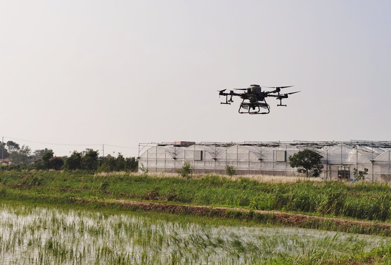 夏至水门开,接连几天的暴风雨,田间道路泥泞。6月28日下午,天气刚刚转晴,仓储中心抓住有利天时,紧争农务,抢抓农时节点,采用无人机为水稻田有序开展追肥工作。(姜姝妍)