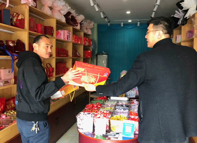 “五一”假期是举办喜宴的高峰期,为了充分打好喜宴市场这场“仗”,米业营销中心销售班组明确近阶段销售重点,瞄准细分市场,踏准节奏抢占时机开发喜米市场,积极走访洽谈喜礼铺子、酒店等喜宴礼品销售点,为“盐田玉”喜米品牌打造了优质的销售平台。(李家轩)