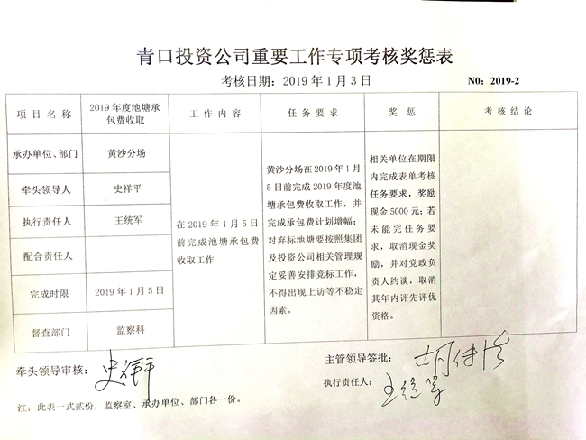【表单考核】青口投资公司重要工作专项考核奖惩表