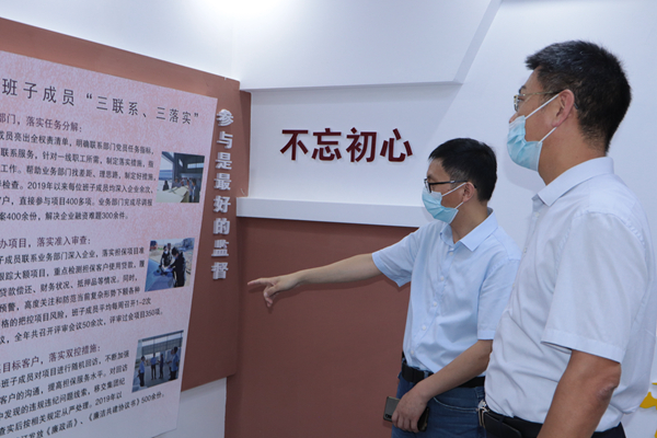 8月10日上午,公司党支部副书记袁忠带领党群工作部全体员工到兄弟单位资产管理公司参观交流,资产管理公司党支部副书记王松柏陪同。