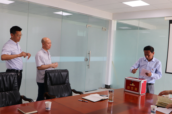 6月11日下午,公司党支部召开党员大会,全体党员出席会议,讨论和表决孔令梅等4名发展对象入党事项。会议由党支部书记邹德兵主持。