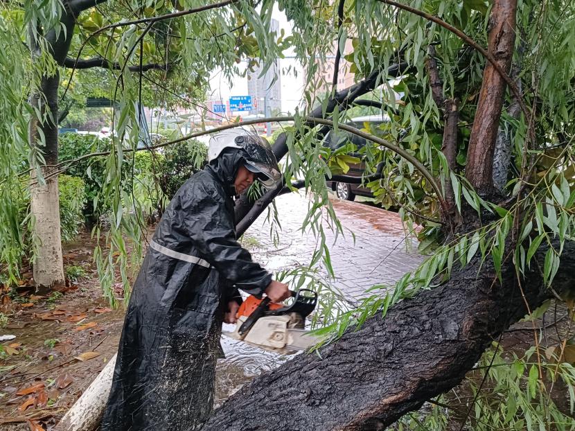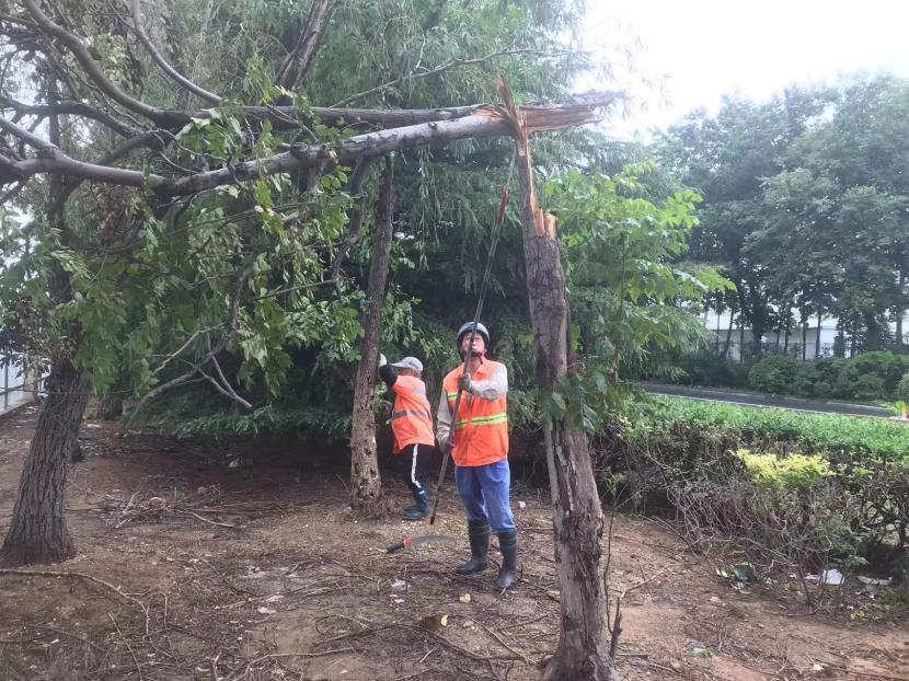 绿化分公司全力以赴筑牢汛期“安全网”,迅速开展应急处理,加大现场巡查力度,及时进行排涝清淤、树木扶正、强基加固,全力排除险情,保障树木、苗木安度汛期。截至20日17时,出动巡查人员 56人次,巡查车、高架车、货车等车辆 24车次,扶正移栽倒伏树木 70 株,修剪断枝 12株,加固支撑168株。对云池路、玉竹路、汇晶路等22处路段排涝清淤,及时消除辖区内安全隐患,保障了市民出行安全,巩固了城市绿化成果。