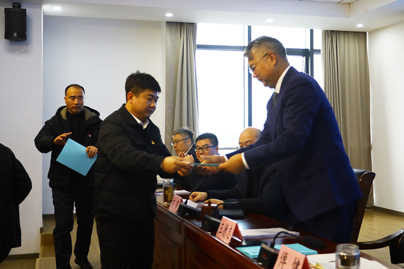 会上,副总经理孙大军作2024年安全生产工作报告,党委副书记、工会主席傅健宣读2024年度安全生产先进单位、先进班组、先进个人表彰决定。各单位向党委书记、董事长王德志递交安全环保责任书。公司党委书记、董事长王德志出席会议并讲话。