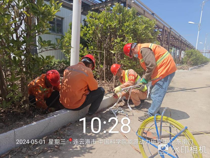 在中科院的路灯电缆施工现场,2000来米的电缆穿管工程时间紧任务重!旧路灯基座电缆孔全被泥土堵塞,穿线相当困难!在“老黄牛”乔以成带领下,市政班组全员在岗,集思广益克服困难。大家顾不上烈日当头、蚊虫叮咬,合起号子加油干,确保两天拿下全部工程量。