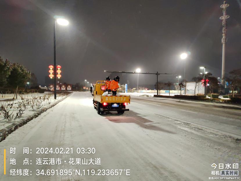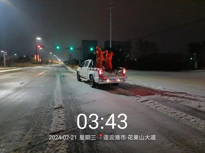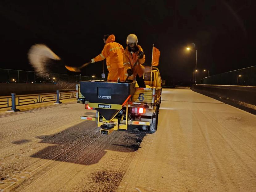 受寒潮影响,2月20日下午,港城普降“冰雪+冰粒”,投资公司第一时间启动恶劣天气应急处置预案,道路保洁、市政养护、后勤保障等战线的干部职工以雪为令,在重点区域、重点路段、坡道、桥梁、涵洞等结冰路段进行撒盐融雪融冰作业,全力以赴除冰雪、防事故、护平安,为市民群众出行一路“护航”。