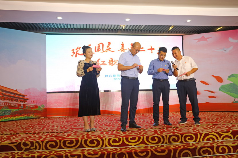 为庆祝新中国成立73周年,9月29日下午,台北投资公司举办了“欢度国庆·喜迎二十大”红歌传颂会,来自各直属单位和机关广大员工汇聚一堂,用最甜美的声音歌唱祖国、用最真挚的诗词赞颂祖国,现场亮点频现、精彩纷呈。