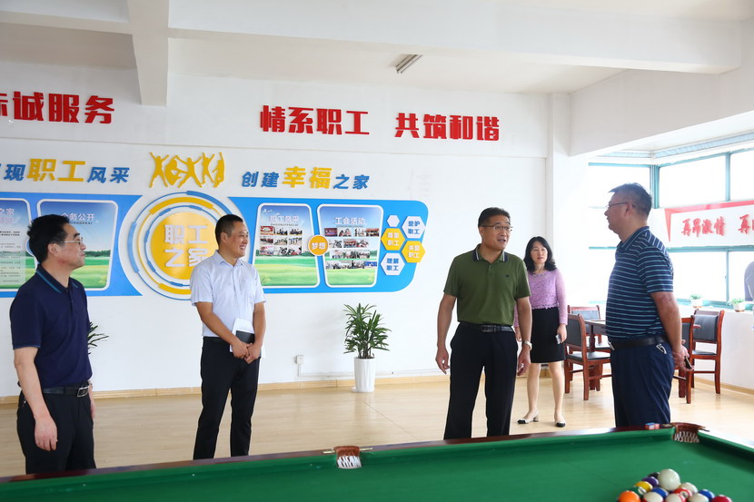 9月2日集团公司工会来台北公司开展工会工作专题调研。集团领导刘承志带队,调研组一行首先来到临达公司,参观职工建家工作开展情况。刘主席对职工文体活动、文体设施、困难帮扶等一一询问,并对今后发展作出指导。