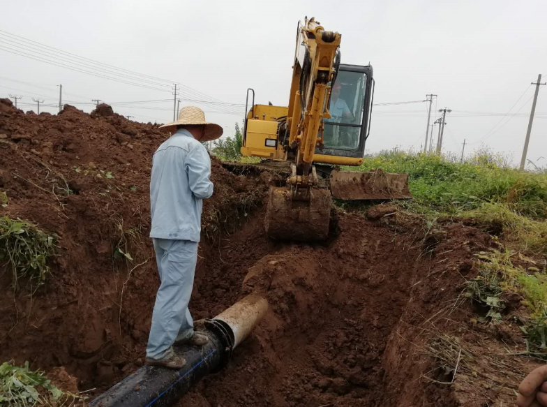 镜头三:东输灌西的钙液管道因使用年久老化,在新东方大道路下的穿越自然损坏,为了不影响钙液销售,抢修工作正“马不停蹄”!