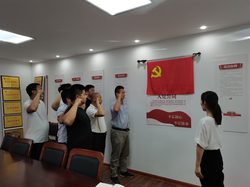 “我志愿加入中国共产党,拥护党的纲领,遵守党的章程……”全体党员紧握右拳,活动在重温入党誓词中拉开帷幕。声音铿锵有力,面貌昂扬向上,激励着党员时刻牢记入党誓词,践行入党诺言。
