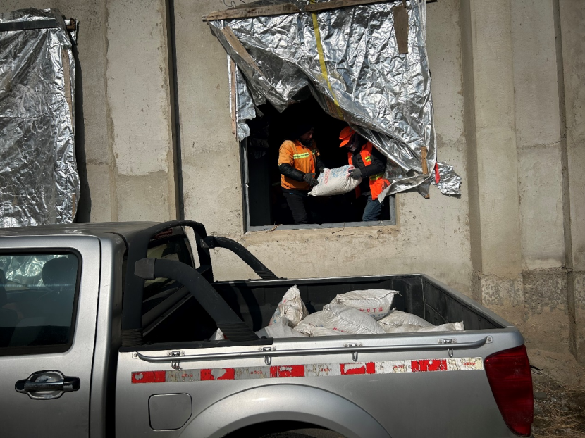 本次任务共出动环卫分公司铲车一辆、自卸车一辆、保洁员工12名,每个班放置融雪剂40袋,历时两个下午时间将九个班共计360余袋融雪剂全部发放到位。