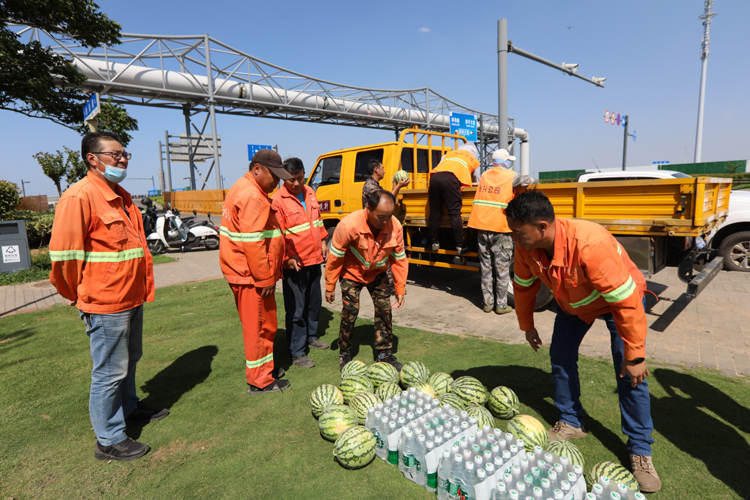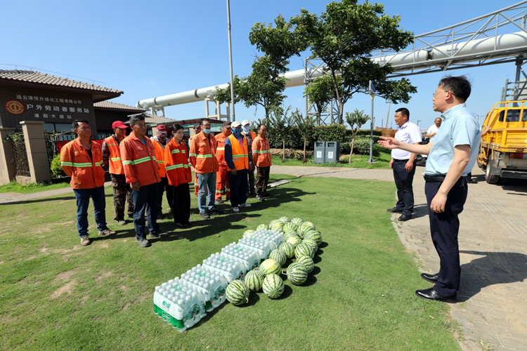 7月5日下午,投资公司党委副书记、工会主席刘刚深入一线看望慰问高温作业职工,为他们送去矿泉水、西瓜等防暑降温物品,嘱咐他们调节好高温作业时间,用好防暑降温药品包,确保高温作业安全。
